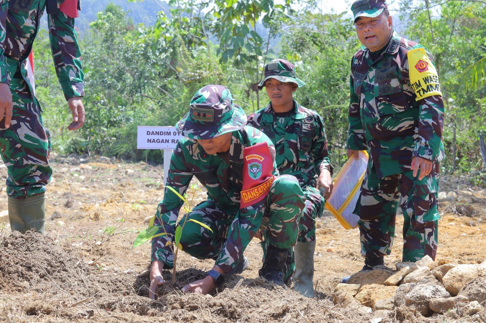 NAGAN RAYA – Di sela aktivitas pembangunan desa, Satgas TMMD Ke-127 Kodim 0116/Nagan Raya menyempatkan diri melakukan aksi penghijauan dengan menanam sejumlah bibit pohon di sekitar lokasi kegiatan.