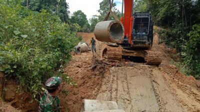 ACEH BARAT – Program TNI Manunggal Membangun Desa (TMMD) Reguler ke-127 yang dilaksanakan Kodim 0105/Abar terus berupaya meningkatkan kualitas infrastruktur pedesaan melalui pembangunan konstruksi pendukung jalan di Desa Pasi Aceh, Kecamatan Woyla.