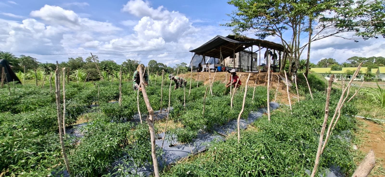 Aceh Barat, Selasa (10/3/2026) – Satgas TMMD Reguler ke-127 Kodim 0105/Aceh Barat meninggalkan kebun hortikultura sebagai salah satu warisan program pembangunan di Desa Pasi Aceh, Kecamatan Woyla.
