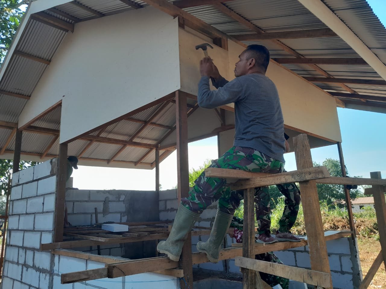 Peltu Idham, anggota Satgas TMMD yang memimpin pembangunan fisik tambahan, menyampaikan, Kami terus bekerja maksimal agar poskamling segera bisa digunakan oleh warga.