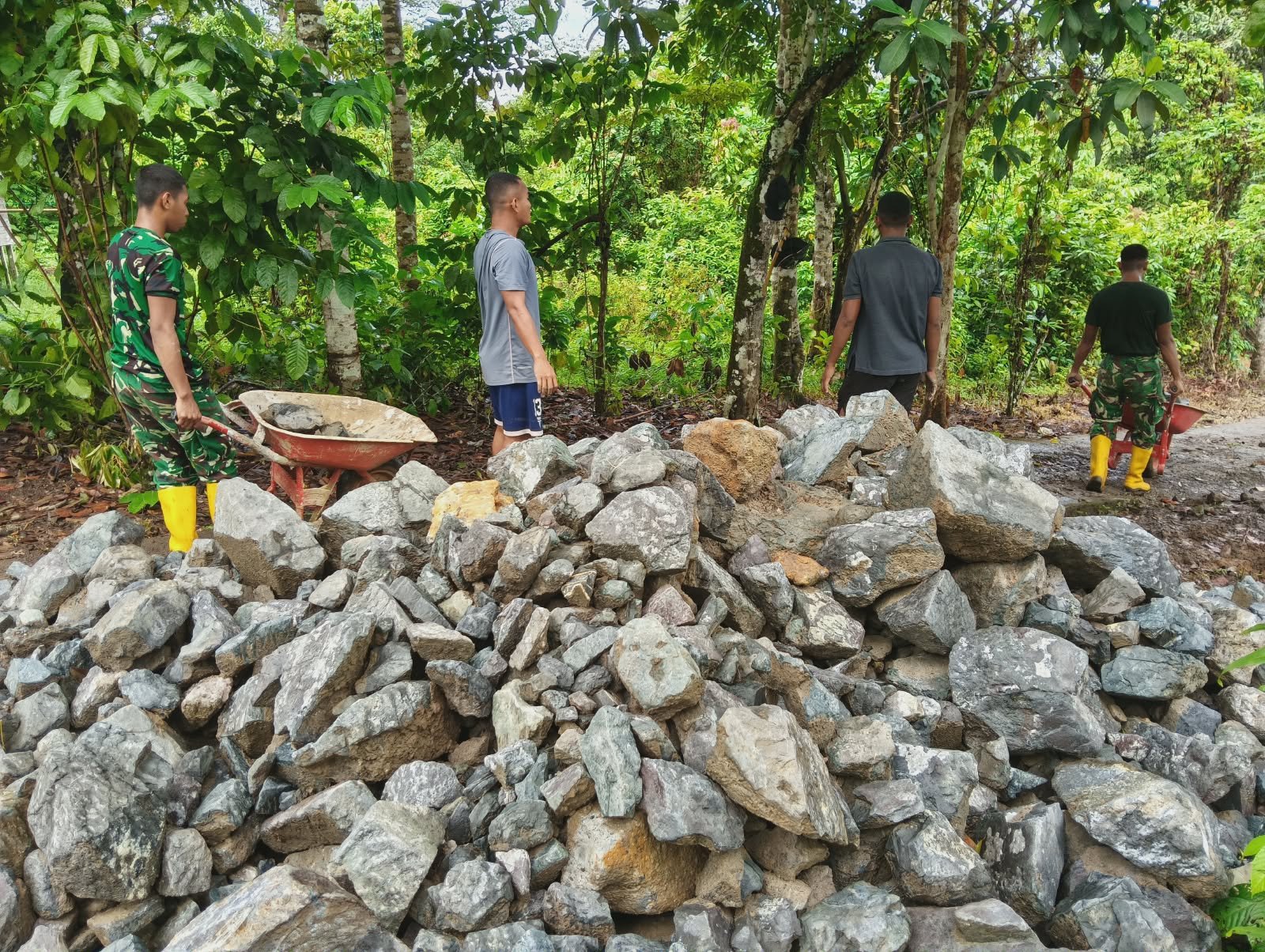 Pelaksanaan kegiatan pembangunan ini melibatkan sinergi antara berbagai unsur, yakni 9 personel TNI, 2 aparat pemerintah desa, serta 10 warga masyarakat setempat. Keterlibatan seluruh elemen tersebut mencerminkan kuatnya semangat gotong royong dalam mendukung percepatan pembangunan infrastruktur di wilayah pedesaan.