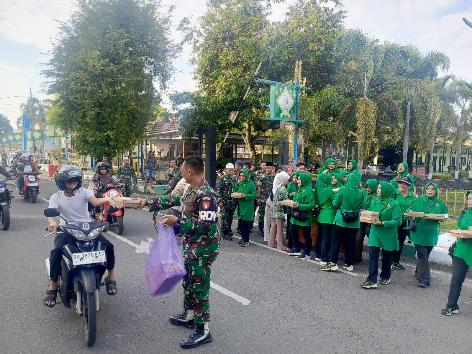 HULU SUNGAI SELATAN – Di tengah keberkahan bulan suci Ramadan 1447 Hijriah, Komando Distrik Militer (Kodim) 1003/Hulu Sungai Selatan (HSS) bersama Persit Kartika Chandra Kirana Cabang XXVI Koorcab Rem 101 PD XXII Tambun Bungai kembali menunjukkan komitmen sosialnya dengan menggelar aksi pembagian takjil dan makanan gratis kepada masyarakat. Kegiatan mulia ini berlangsung pada hari Senin, 2 Maret 2026, berlokasi strategis di depan Markas Kodim 1003/HSS, Jalan A. Yani Kelurahan Kandangan Kota.