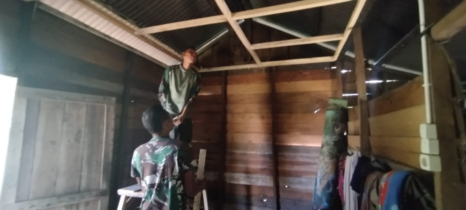 Setiap hari para prajurit bekerja dengan penuh semangat. Mereka memasang rangka plafon, memastikan setiap bagian terpasang kuat dan rapi.
