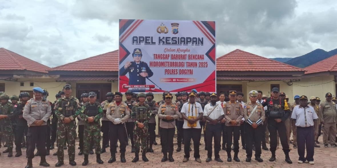 Apel dipimpin Kapolres Dogiyai, Kompol Yocbeth M. Mayor, S.H., dan dihadiri perwakilan TNI, jajaran Polri, serta pemerintah daerah yang diwakili Asisten II Setda, Natalis Agapa, S.E., M.Si. Kapolres menekankan pentingnya kesiapan seluruh elemen dalam merespons bencana secara cepat dan tepat.