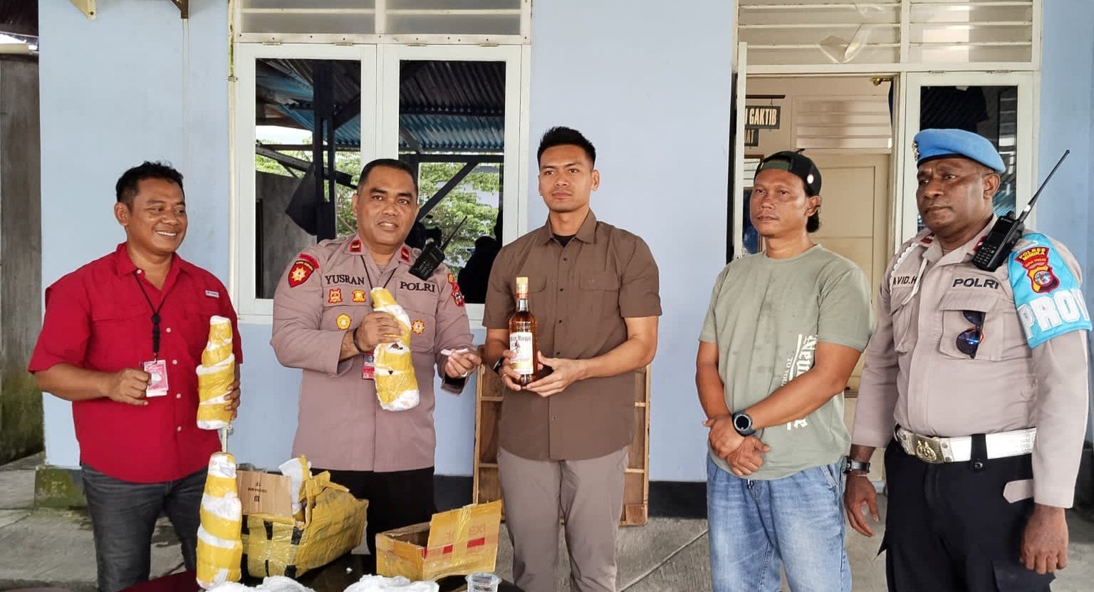 Timika, Papua Tengah, 23 Desember 2025 — Petugas Bandara Mozes Kilangin Timika bersama Satgas Korpasgat berhasil menggagalkan penyelundupan empat botol minuman keras jenis Captain Morgan dan dua paket narkotika jenis sabu yang dikirim melalui Terminal Kargo Bandara, Senin (22/12). Paket tersebut rencananya akan dikirim ke Ilaga, Kabupaten Puncak, Papua Tengah.
