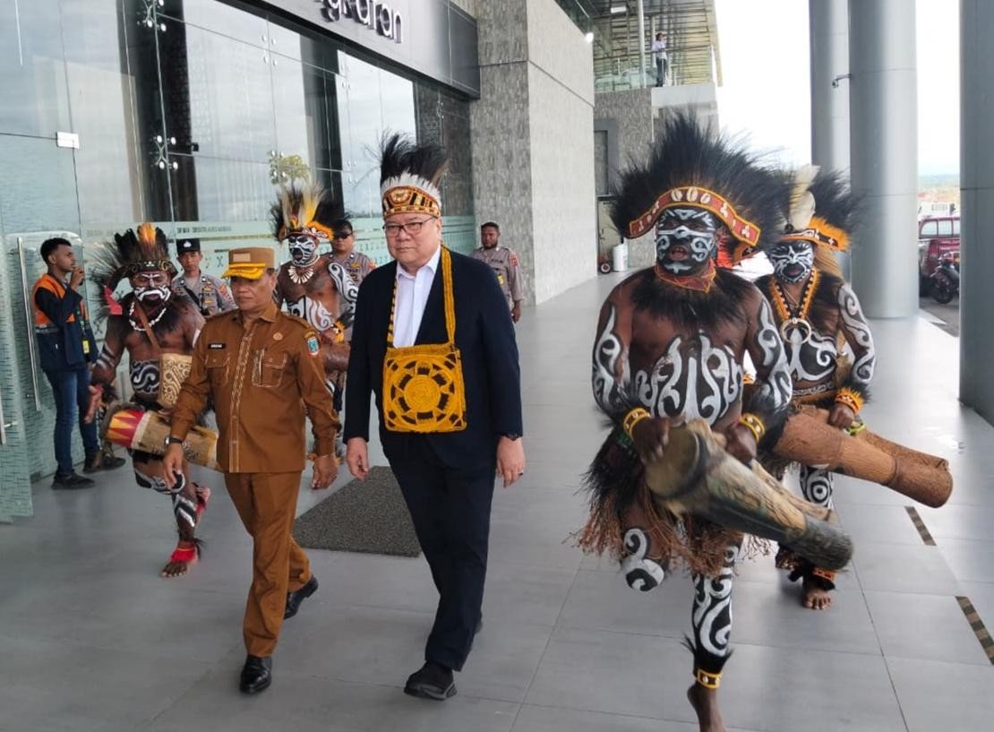 Rombongan disambut meriah di Bandara Douw Aturure, Kampung Karadiri, Distrik Wanggar, dengan tarian adat Papua, pengalungan noken, serta pemasangan mahkota kehormatan sebagai simbol penghormatan dari masyarakat setempat. Pemerintah Provinsi Papua Tengah melalui Staf Ahli Gubernur Bidang Kemasyarakatan, SDM, dan Pengembangan Otsus, Ukkas S.Sos, M.Kp, turut menyampaikan ucapan selamat datang.