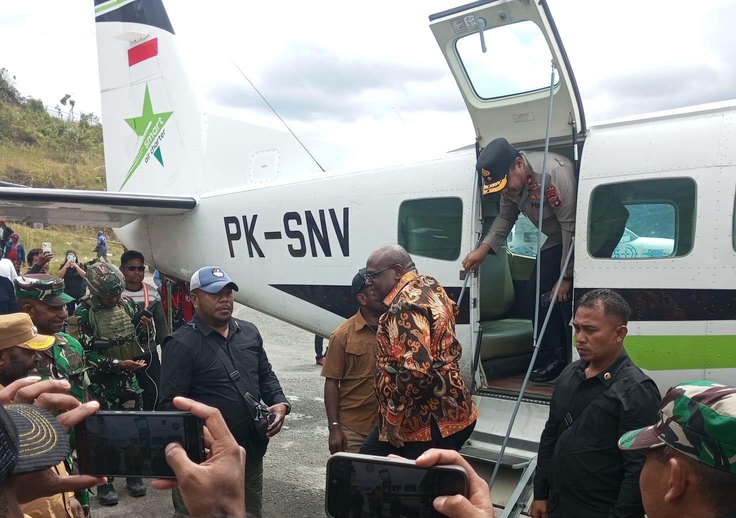 <p><strong>Intan Jaya, Papua Tengah, 13 Desember 2025 –</strong> Gubernur Papua Tengah, Meki Fritz Nawipa, S.H., tiba di Bandara Bilorai Sugapa, Jumat (12/12), untuk menyaksikan lima mantan anggota Organisasi Papua Merdeka (OPM) ikrar kembali setia kepada Negara Kesatuan Republik Indonesia (NKRI). Kedatangan dan keberangkatan Gubernur dikawal Satgas Korpasgat. Personel Satgas Korpasgat yang bertugas di bandara ditempatkan di titik strategis untuk memastikan operasional Bandara Bilorai berjalan lancar.</p>