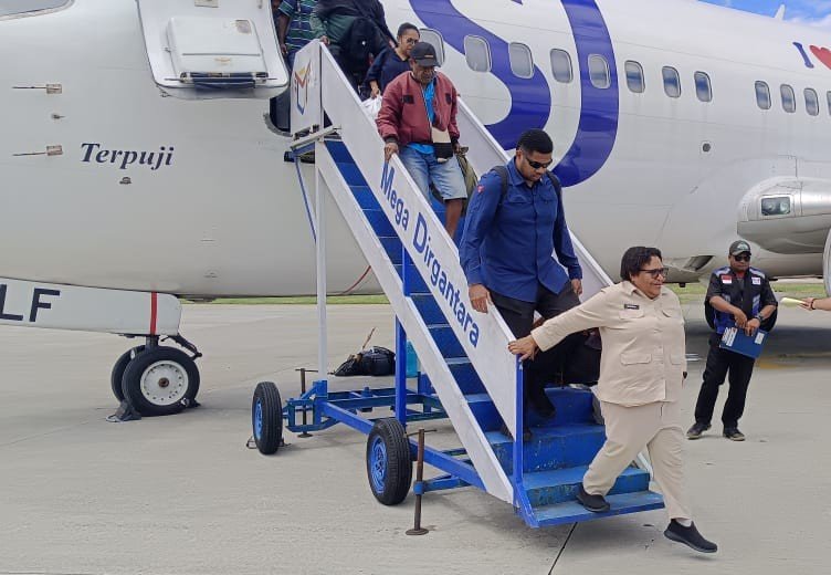 Wamena, Papua Pegunungan, 7 Februari 2026 – Satgas Korpasgat mengawal kedatangan Wakil Menteri Dalam Negeri RI (Wamendagri) Dr. Ribka Haluk, S.Sos., M.M., beserta rombongan di Bandara Wamena, Kabupaten Jayawijaya, Jumat (6/2/2026).