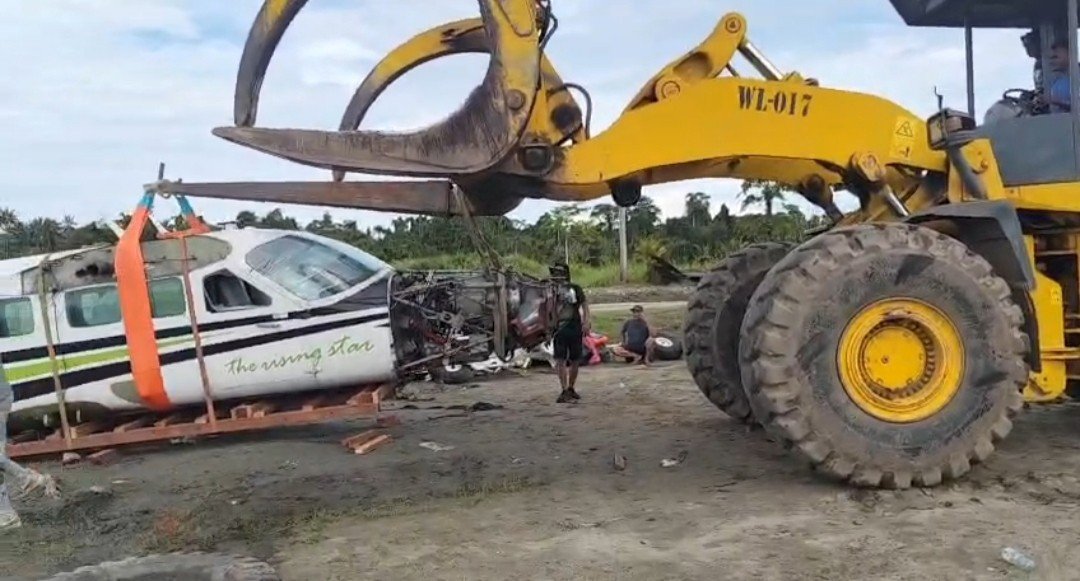 Evakuasi berlangsung di Kampung Kaladiri, Distrik Wanggar, Kabupaten Nabire, melibatkan tim teknisi Smart Air bersama aparat terkait. Tim teknisi melepas sayap dan roda pesawat, memindahkan badan pesawat ke dalam kontainer, dan menyiapkan pengangkutan ke pelabuhan. Proses ini memakan waktu sekitar tiga har.