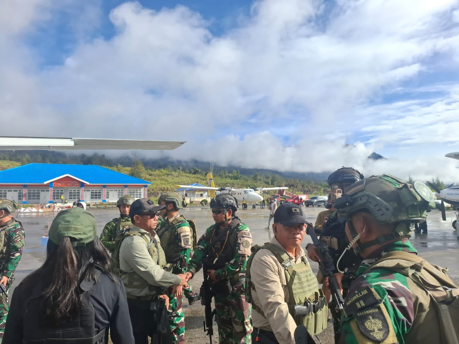 Rombongan Kaskogabwilhan III antara lain Ir Kogabwilhan III Laksma TNI Horas Wijaya Sinaga, S.E., CRMP, Aspers Kogabwilhan III Brigjen TNI Widodo Noercahyo, serta sejumlah staf pendamping. Sesampainya di Bandara Aminggaru Ilaga, rombongan disambut oleh Dansatgas Yonif 700/WYC Letkol Inf Heraldo Tabansonda, Danden Rajawali II Mayor Inf Sahang, Dansektor II Satgas Korpasgat Kapten Pas Irfan Fakhrisam, S.Tr.(Han), dan Danpos Satgas Korpasgat Ilaga Lettu Pas Richo Hamdan P., S.Tr.(Han).