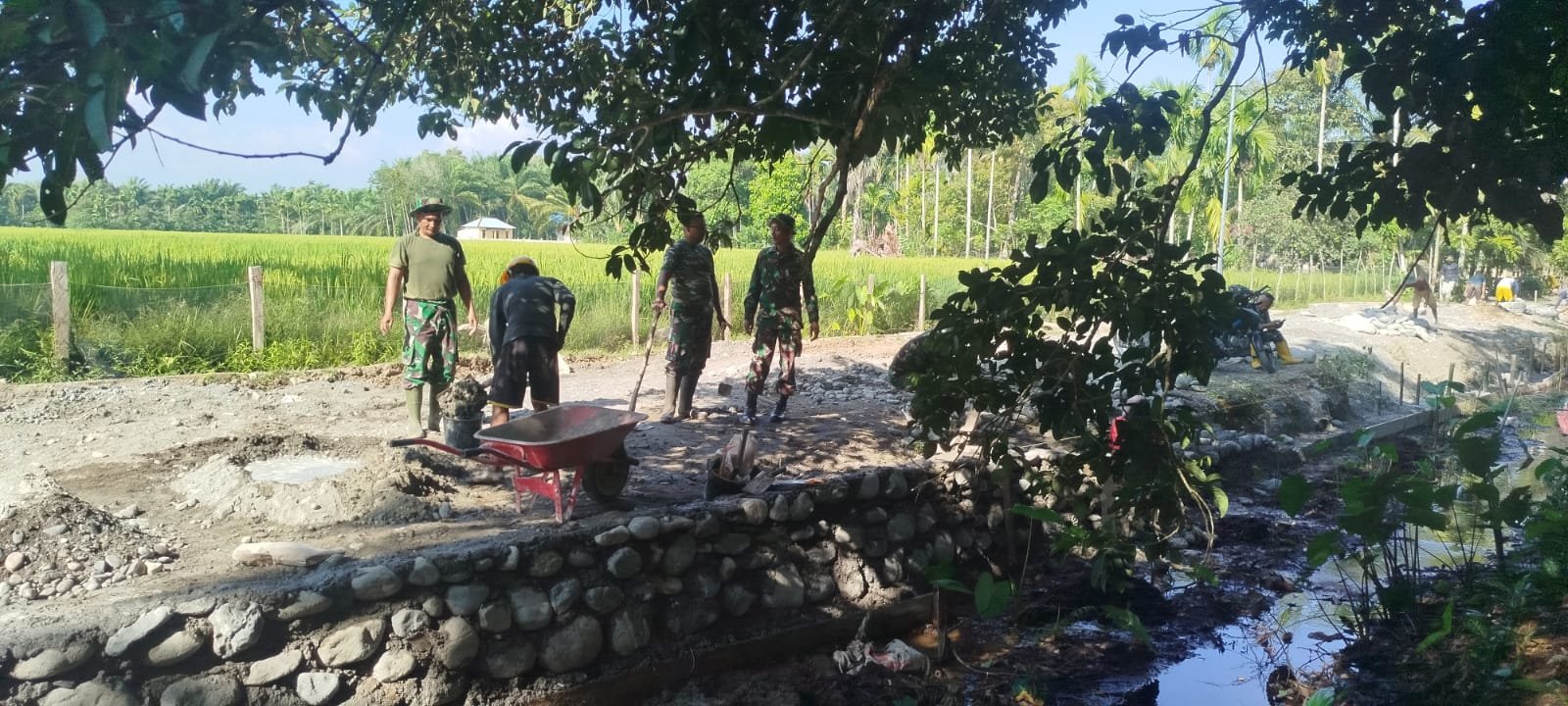 Melalui kerja keras yang dilakukan secara bersama-sama, pembangunan infrastruktur desa diharapkan mampu meningkatkan akses transportasi dan mendukung aktivitas masyarakat setempat.(0105).
