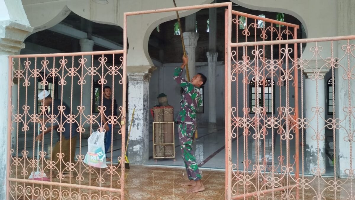 Aceh Barat – Di lokasi TMMD Reguler ke-127 Kodim 0105/Abar, prajurit TNI tidak hanya dikenal sebagai pembangun jalan dan infrastruktur desa. Mereka juga hadir sebagai sahabat masyarakat dalam menjaga kebersihan rumah ibadah.