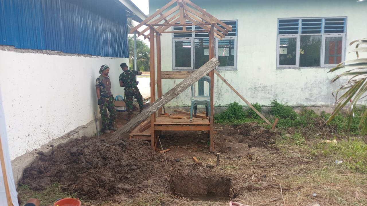 Pelda Gatot, yang memimpin di lokasi, merinci progres pengerjaan: atap telah selesai 25 persen, lantai 15 persen, lubang septic tank baru 5 persen, sementara dinding masih dalam tahap persiapan awal. Meski progres belum maksimal, antusiasme anggota Satgas tetap tinggi, bekerja bersama warga untuk memastikan fasilitas ini segera bisa digunakan.
