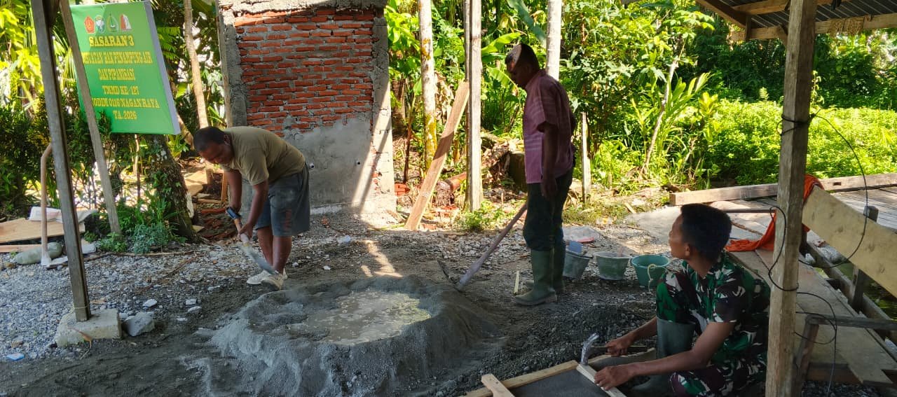NAGAN RAYA — Satgas TMMD Ke-127 bersama Kodim 0116/Nagan Raya melaksanakan percepatan pembangunan fasilitas mandi cuci kakus (MCK) sebagai bagian dari sasaran fisik program TMMD, Minggu (22/2/2026).