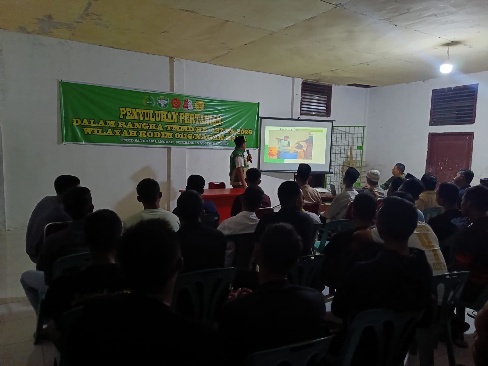 Nagan Raya — Satgas TMMD ke-127 Kodim 0116/Nagan Raya berkolaborasi bersama Dinas Pertanian Kabupaten Nagan Raya menggelar kegiatan penyuluhan pertanian bertempat di Balai Desa Ujung Blang, Kecamatan Beutong, Kabupaten Nagan Raya, Rabu (25/02/2026).