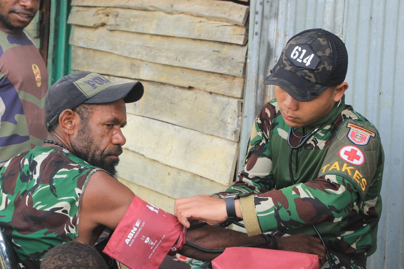 <p><strong>LANNY JAYA &#8211; </strong>Satgas Yonif 614/RJP Pos Tiom terus menunjukkan komitmennya dalam memberikan pelayanan kesehatan kepada masyarakat. Pada hari Senin (11/8/2025) Bintara Kesehatan Pos Tiom Sertu Dimas melaksanakan pemeriksaan kesehatan dan pemberian obat gratis bagi warga Konikme, Distrik Yugungwi, Kabupaten Lanny Jaya, Papua Pegunungan,.</p>