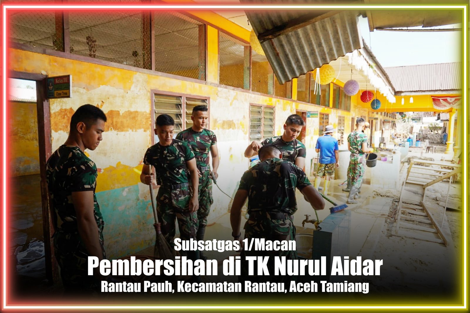 Kegiatan tersebut dilaksanakan oleh Subsatgas 1/Macan di TK Nurul Aidar Rantau Pauh, Kecamatan Rantau; Subsatgas 2/Hiu di TK Al-Ahnat, Kecamatan Manyak Payed; Subsatgas 3/Elang di Kantor Datok Menang Gini, Kecamatan Karang Baru; serta Subsatgas 4/Kijang di TK Pelangi Bukit Tempurung, Kecamatan Kuala Simpang, yang seluruhnya merupakan lokasi terdampak bencana alam.