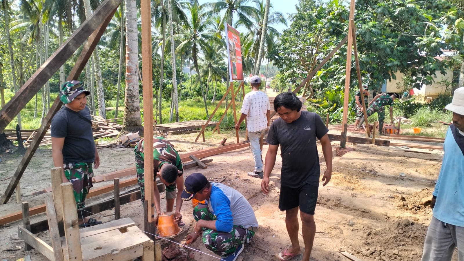 Semangat Gotong Royong Satgas TMMD ke-125 Wujudkan Tiang Kokoh Rumah Warga
