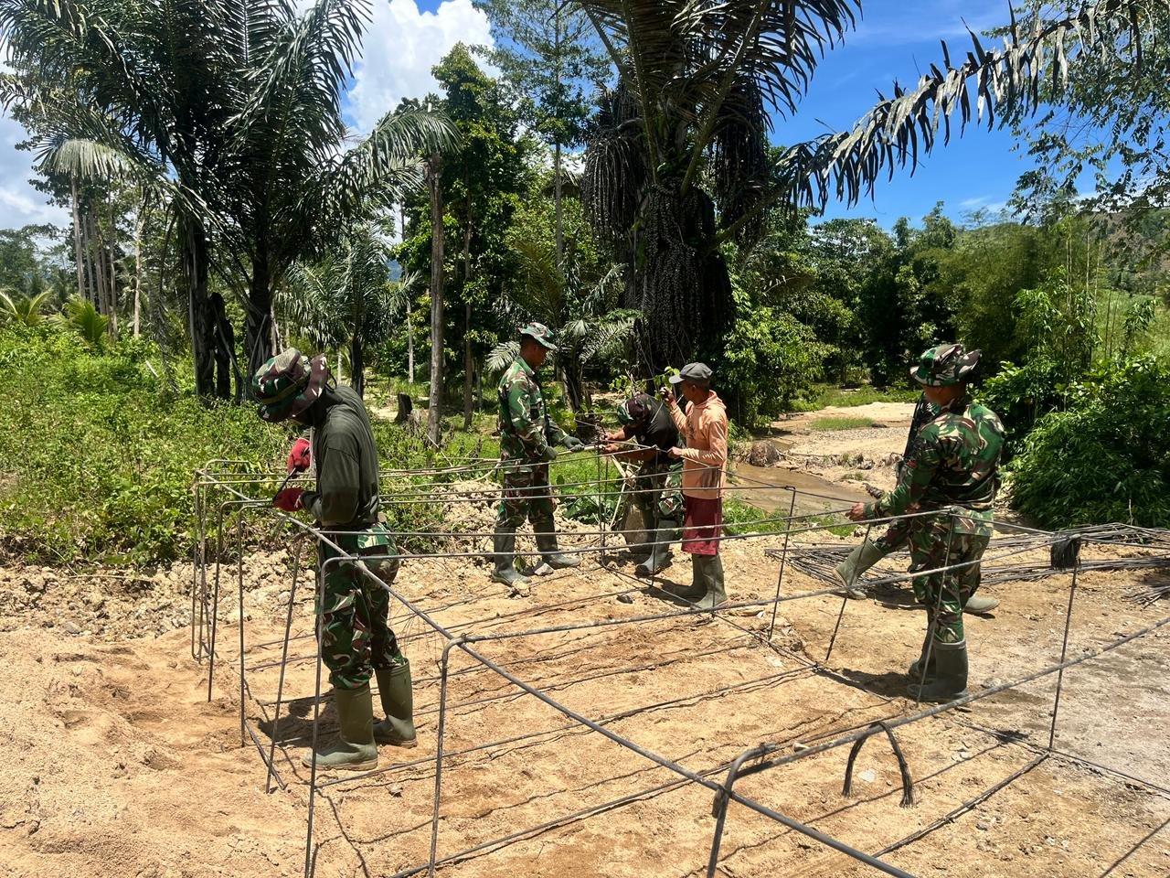 Pantauan di lokasi menunjukkan aktivitas pembangunan berlangsung cukup padat. Meskipun berada di bawah terik matahari yang menyengat, para prajurit TNI dan warga tetap bekerja dengan semangat tinggi. Fokus pekerjaan saat ini adalah merangkai struktur besi beton sebagai bagian penting dari konstruksi jembatan sebelum memasuki tahap pengecoran.