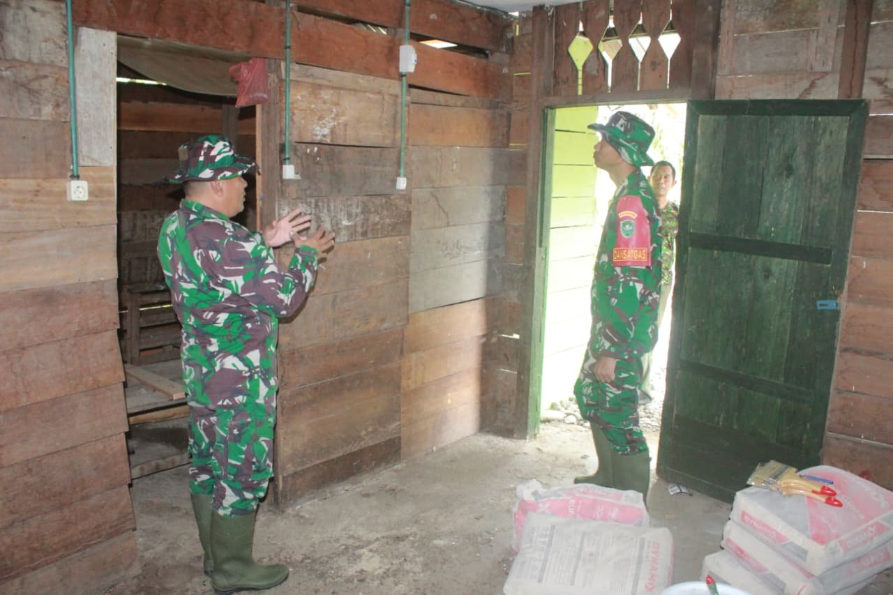 <p>Rumah kayu yang menjadi sasaran tampak masih dalam proses pembenahan. Dinding papan yang tersusun rapi namun sederhana menjadi gambaran awal perubahan yang sedang dikerjakan oleh Satgas TMMD. Di dalam ruangan itu, Dansatgas berdialog dan memberikan instruksi teknis guna memastikan pekerjaan sesuai perencanaan.</p>
