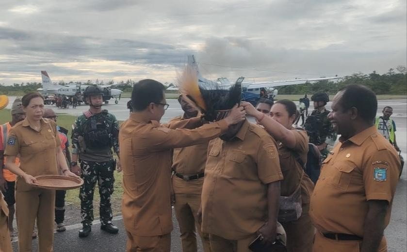 Dekai, Yahukimo, 28 Oktober 2025 – Kedatangan Inspektur Provinsi Papua Pegunungan, Yakobus Way, S.E., M.Si., di Bandara Nop Goliat Dekai, Kabupaten Yahukimo, Selasa (28/10/2025), berlangsung lancar berkat koordinasi yang solid antara Satgas Korpasgat dan pemerintah daerah. Kunjungan ini dilakukan dalam rangka kunjungan kerja sekaligus menghadiri kegiatan Penahbisan Gereja Baptis di kabupaten setempat.
