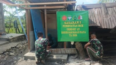 NAGAN RAYA – Terik matahari seakan membakar hamparan Desa Ujong Blang, Kecamatan Beutong. Namun panas itu tak mampu meredupkan semangat personel Satgas TMMD Ke-127 Kodim 0116/Nagan Raya bersama masyarakat. Di lokasi pembangunan badan jalan, mereka bahu-membahu menyelesaikan pembuatan box culvert—struktur penting yang menjadi urat nadi aliran air di kawasan tersebut.
