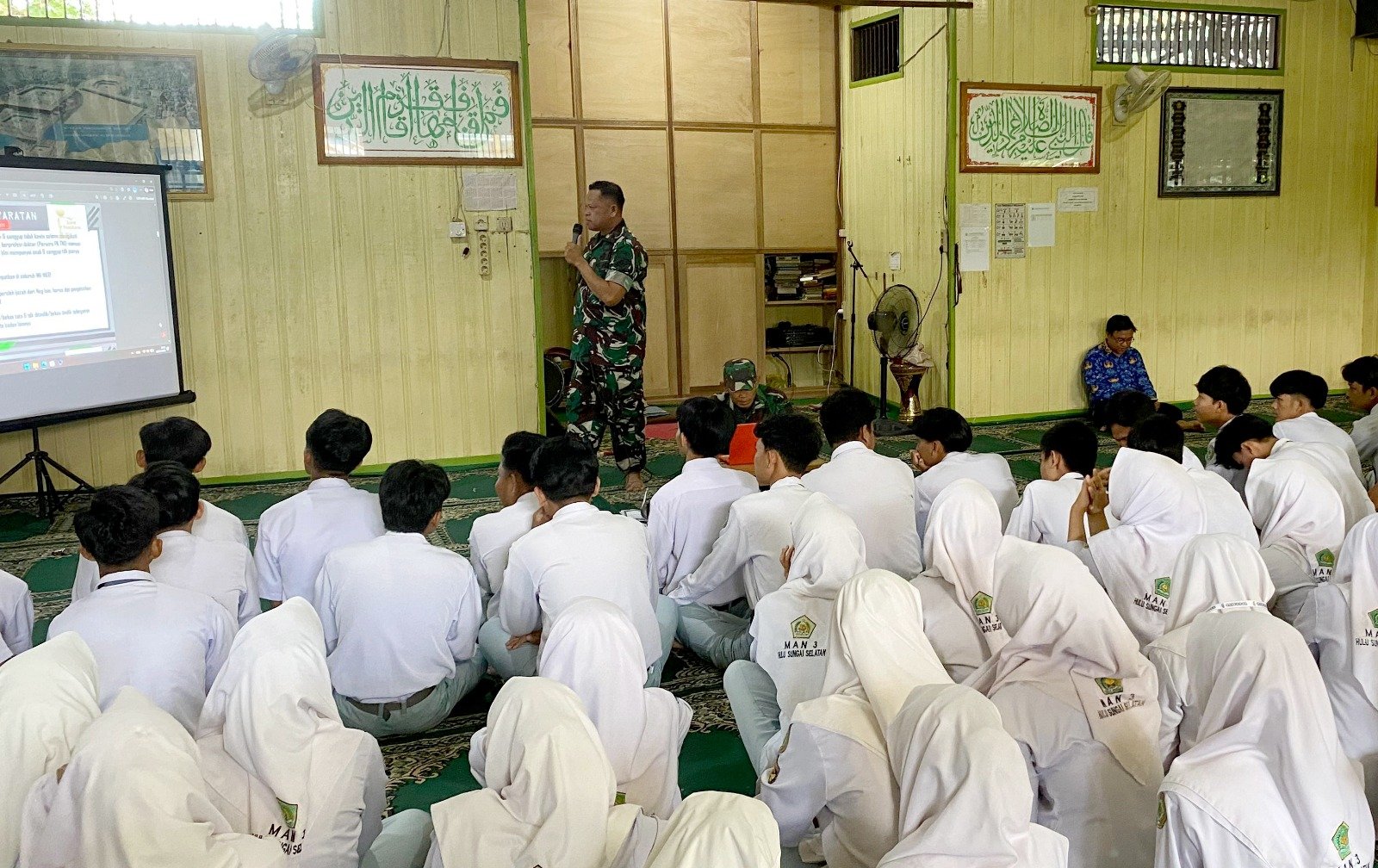 Hulu Sungai Selatan – Peltu Maizul Hakim, Pjs. Danramil 1003-07/Daha Utara, Kodim 1003/HSS, mengadakan sosialisasi pendaftaran TNI kepada 112 siswa-siswi MAN 3 Hulu Sungai Selatan (HSS) pada hari ini. Selasa (20/1/26)