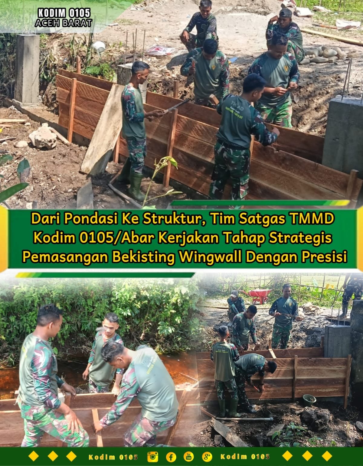 Aceh Barat – Pemasangan papan mall wingwall dalam program TMMD Reguler ke-127 Kodim 0105/Abar mendapat perhatian serius dari pimpinan lapangan.