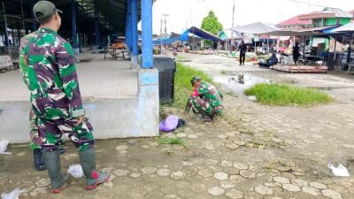 Koramil Rantau Badauh Gelar Karbak Bersihkan Pasar Sungai Gampa Demi Lingkungan Sehat