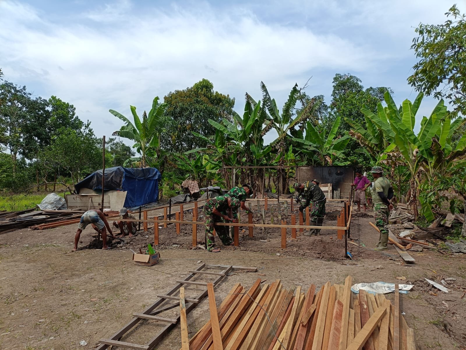 BARITO KUALA – Pembangunan rumah tidak layak huni (RTLH) milik Kai Salamun di Desa Tumih, Kecamatan Wanaraya, terus menunjukkan kemajuan signifikan. Program yang menjadi salah satu sasaran fisik tambahan dalam kegiatan TNI Manunggal Membangun Desa (TMMD) ke-126 Kodim 1005/Barito Kuala ini kini sudah memasuki tahap penting dalam proses konstruksi.