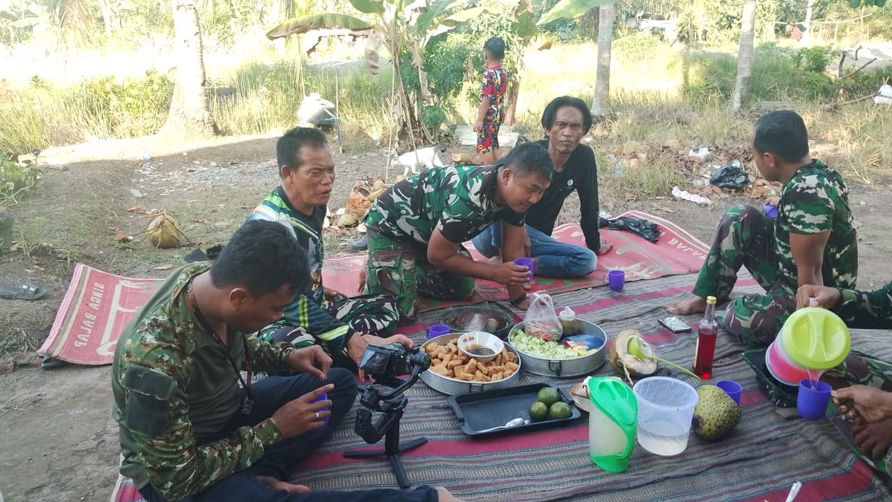 Sambil duduk beralaskan tikar di bawah rindangnya pohon, tampak prajurit TNI dan warga desa saling berbagi cerita sembari menyantap menu sederhana hasil masakan bersama. Suasana hangat dan penuh canda membuat jarak antara TNI dan masyarakat seolah lenyap, tergantikan rasa kekeluargaan yang tulus.