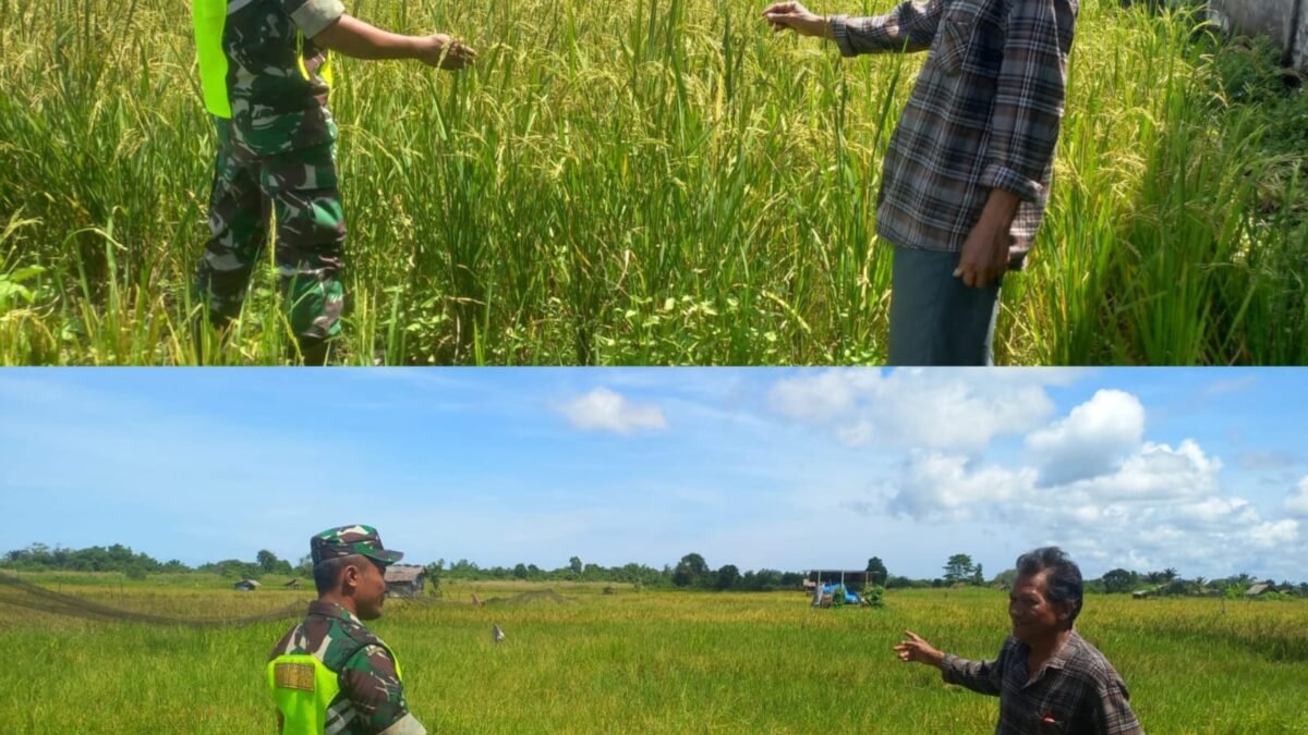 Dalam kesempatan itu, Babinsa bersama petani memeriksa tingkat kematangan padi, kondisi bulir, serta potensi hasil panen yang akan diperoleh.