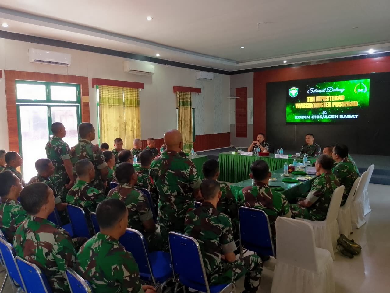 <p>Dalam sambutannya, Dandim 0105/Abar Letkol Inf S. Kembaren, S.E., M.I.P., CFrA., menyampaikan ucapan selamat datang serta apresiasi atas kehadiran Tim Itpusterad. Ia juga memastikan seluruh Babinsa akan melaksanakan tugas secara profesional sesuai dengan tupoksi aparat komando kewilayahan.</p>