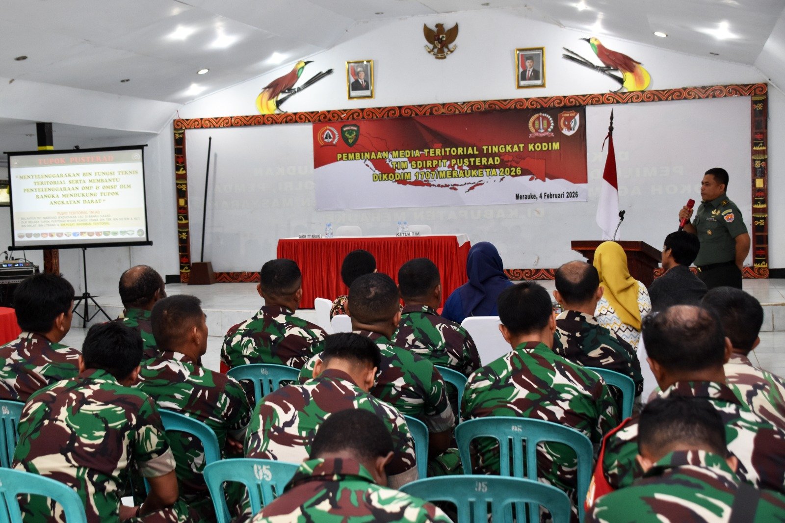 Merauke – Pusat Teritorial Angkatan Darat (Pusterad) melalui Direktorat Pembinaan Informasi Teritorial melaksanakan Program Kerja Pembinaan Media Informasi Teritorial di Aula Anim Ha Kodim 1707/Merauke, Jalan Raya Mandala, Kota Merauke, Kabupaten Merauke – Provinsi Papua Selatan. Rabu (4/2/2026).