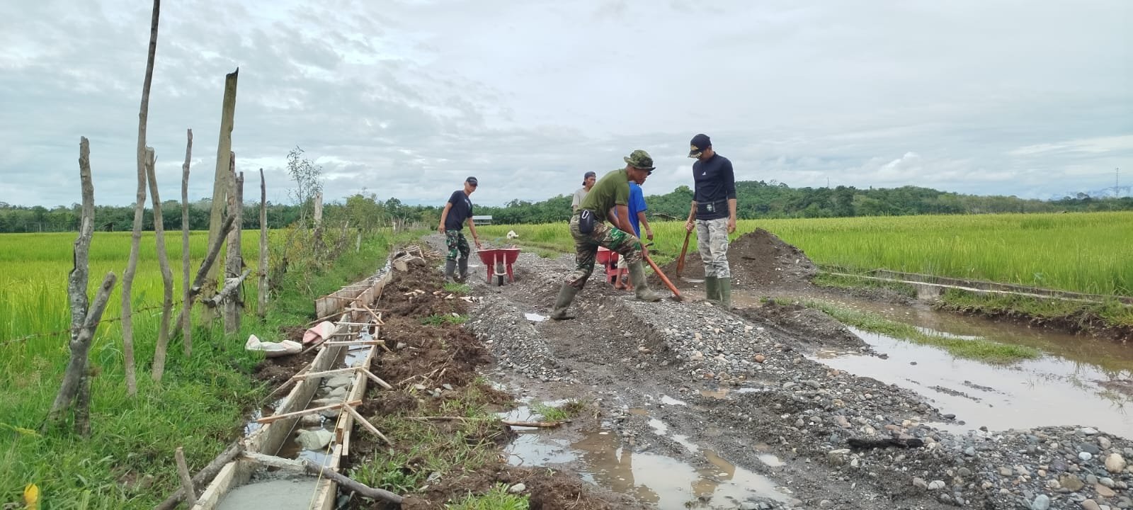 Hari ke-22 pelaksanaan TMMD menjadi saksi eratnya kemanunggalan. Prajurit dan warga bekerja bahu-membahu. Peluh mengalir, tetapi senyum tetap merekah. Lelah seperti tersapu canda sederhana di sela pekerjaan.