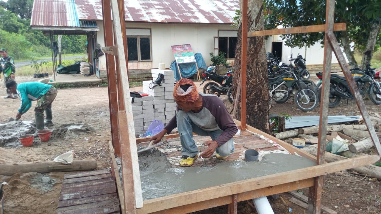 <p>“Kami bekerja sesuai target harian. Cuaca yang cukup bersahabat memudahkan pengerjaan dinding dan lantai. Semoga dalam waktu dekat pembangunan WC ini bisa segera selesai dan dimanfaatkan warga,” ujar Pelda Gatot di lokasi kegiatan.</p>