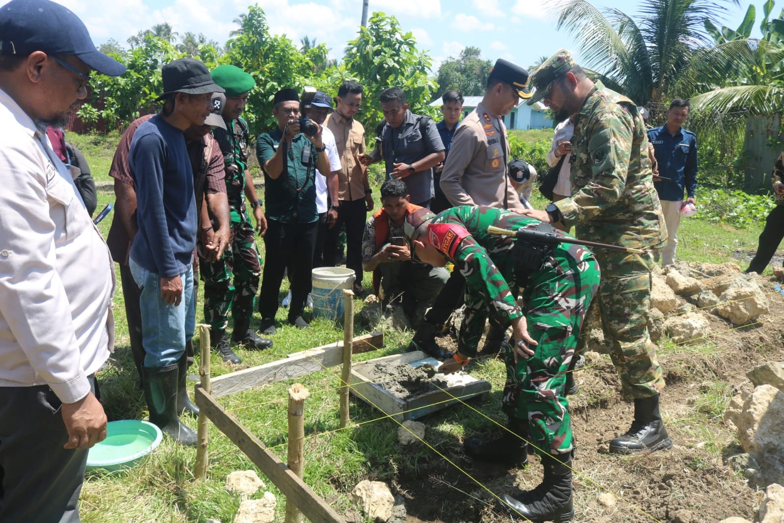 <p><strong>HALMAHERA SELATAN –</strong> Peletakan batu pertama pembangunan Rumah Tidak Layak Huni milik salah satu warga Desa Maffa menandai dimulainya kegiatan fisik TMMD Reguler ke-128 di Desa Maffa, Kecamatan Gane Timur, Kabupaten Halmahera Selatan, Rabu (22/04/2026). Prosesi dilakukan oleh Bupati Halmahera Selatan Bassam Kasuba, Dansatgas TMMD Letkol Inf Syamsul, serta Kapolres Halmahera Selatan AKBP Hendra Gunawan.</p>