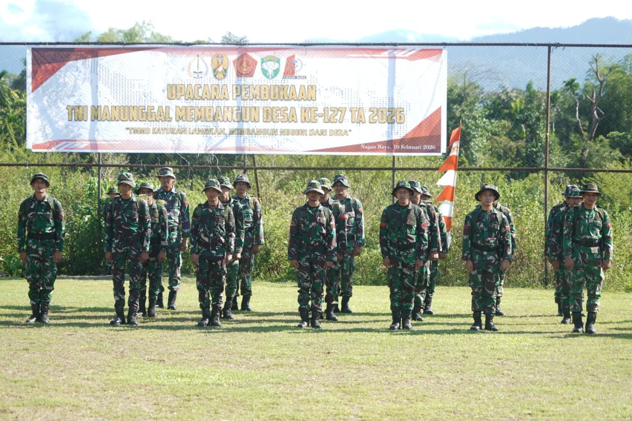Nagan Raya – Komandan Korem 012/Teuku Umar Kolonel Inf Windarto, S.Sos., M.M. menghadiri upacara pembukaan TNI Manunggal Membangun Desa (TMMD) Reguler ke-127 Tahun Anggaran 2026 yang dilaksanakan oleh Kodim 0116/Nagan Raya, bertempat di lapangan Keude seumot Kabupaten Nagan Raya, Selasa (10/02/2026).