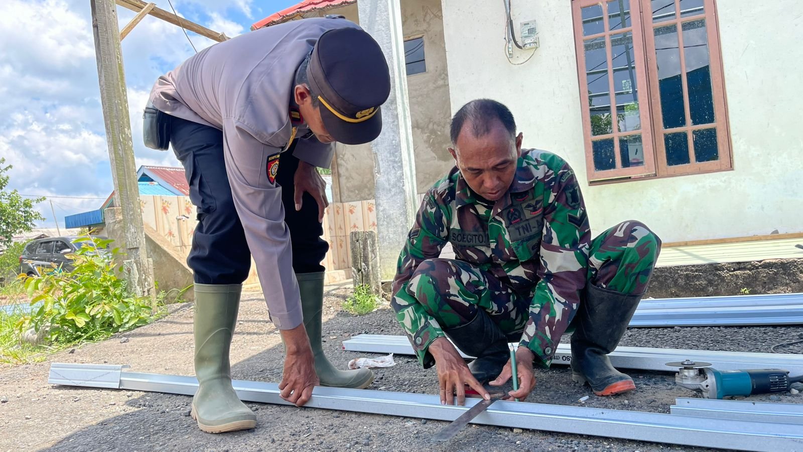 Dalam kegiatan perehaban Mushola Nurul Iksan, anggota Satgas TMMD bersama Kapolsek Wanaraya Iptu Hadi bahu membahu melakukan pemotongan baja ringan yang akan digunakan sebagai bahan utama kerangka atap bangunan. Momen tersebut menjadi bukti nyata kemanunggalan antara aparat teritorial dengan kepolisian dalam mendukung pembangunan untuk kepentingan masyarakat.