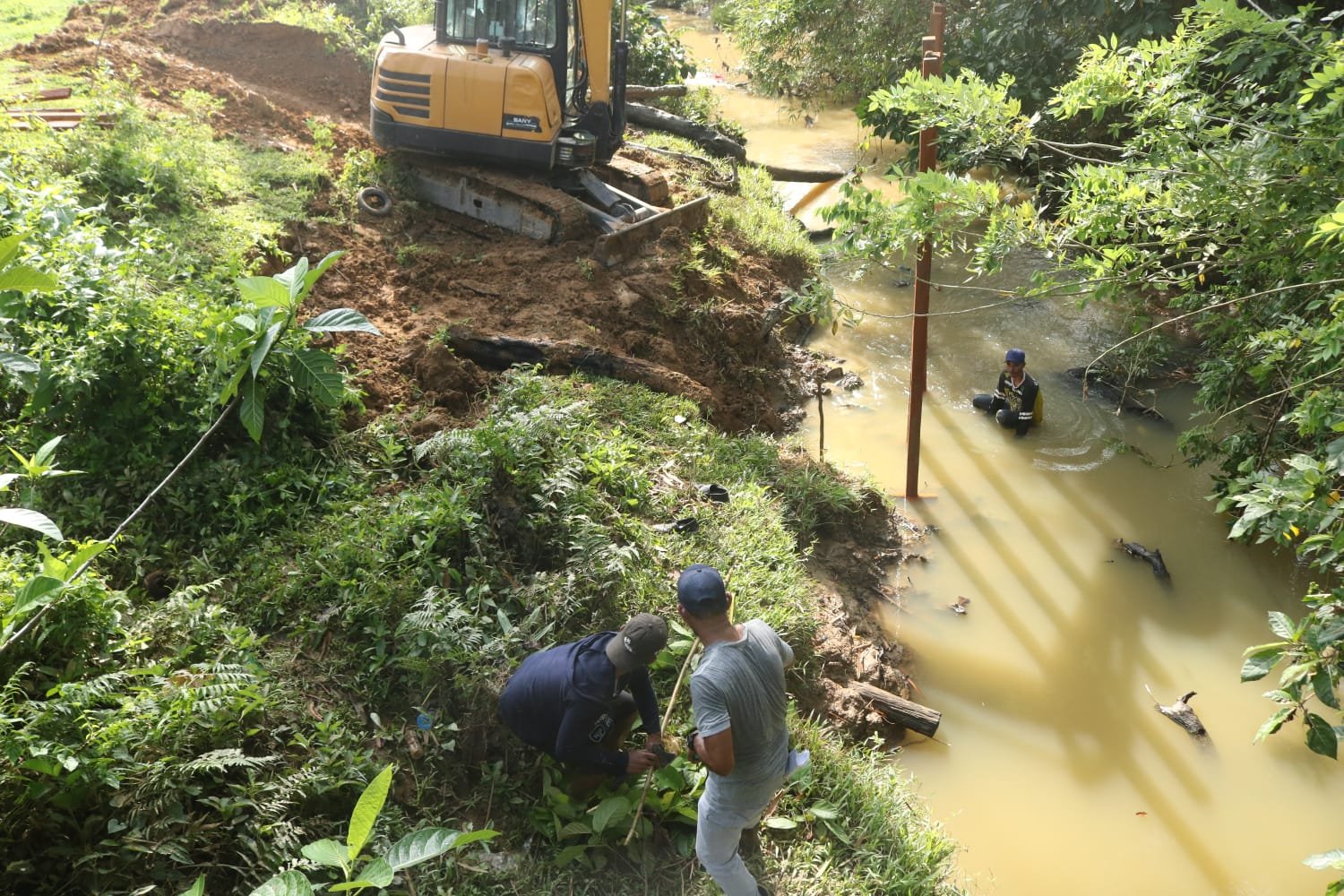 KUTAI TIMUR – Satuan Tugas TNI Manunggal Membangun Desa (TMMD) ke-125 Kodim 0909/Kutai Timur terus menunjukkan komitmennya dalam membangun infrastruktur pedesaan. Salah satu sasaran fisik utama yang tengah dikerjakan adalah pembangunan jembatan penghubung di Desa Suka Rahmat, Kecamatan Teluk Pandan. Pada Selasa (29/7/2025), Satgas TMMD mulai melaksanakan penanaman tiang pancang sebagai tahap awal pembangunan jembatan tersebut.