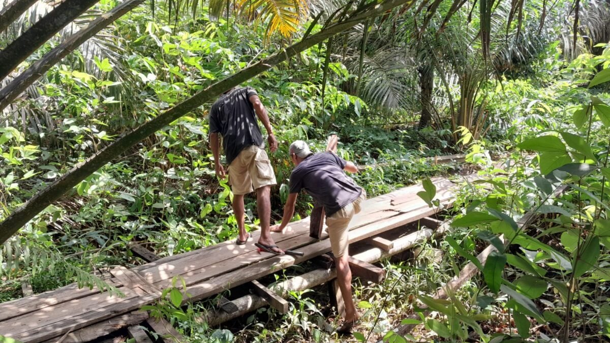 ‎Dalam suasana santai namun penuh makna, mereka berbincang mengenai progres pekerjaan, kondisi lapangan, serta kesiapan material bangunan di lokasi pembangunan di desa tersebut.