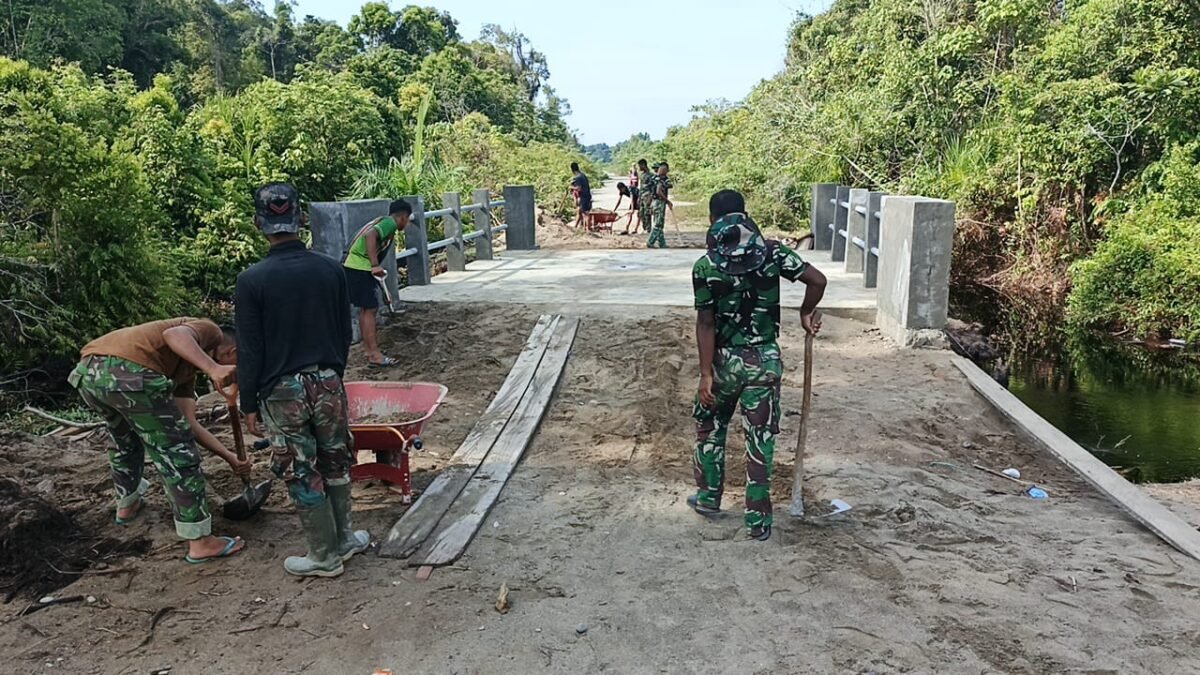 ‎Suasana kebersamaan tampak saat Babinsa, kepala desa, dan para pekerja berada di lokasi.