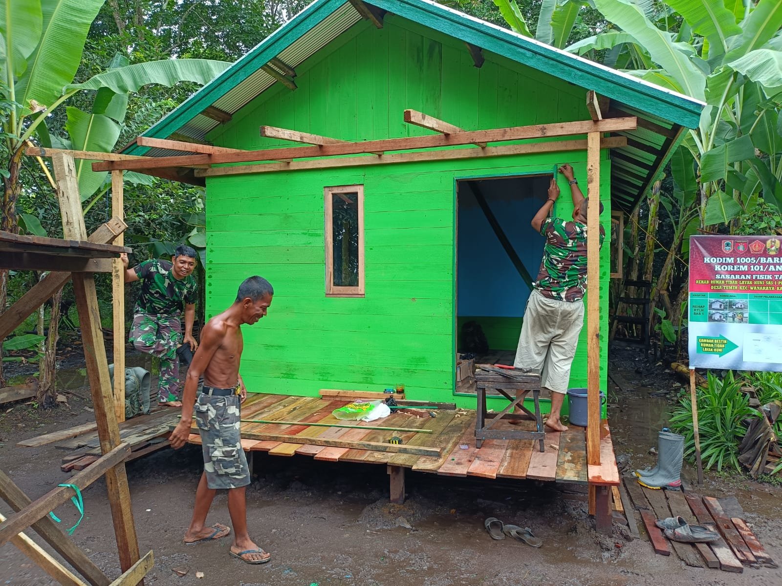 Dan SSK TMMD Ke-126, Kapten Inf Tri Hendro, menjelaskan bahwa dari dua rumah sasaran, satu rumah milik Kai Salamun sudah rampung dikerjakan, sementara rumah Kai Zaini kini dalam tahap penyelesaian.