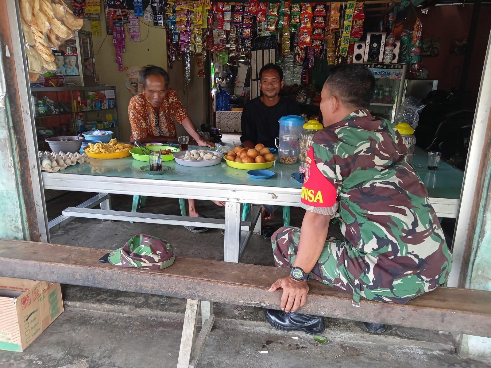 “Untuk mendapatkan informasi tentang perkembangan situasi dan kondisi di wilayah binaan, salah satunya dengan menyambangi masyarakat yang sedang berada di warung kopi sambil ngobrol santai,” ucap Sertu Adi Risdiyanto.